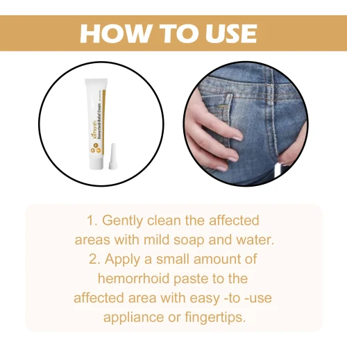 Our Hemorrhoid-Relef Cream contains Glycerin, Sophora Flavescens Root Extract, Thuja Orientalis Extract. It can effectively reduce pain, itching, and burning, as well as reduce swelling and form a barrier on the surface of the skin that helps prevent further irritation and infection, keeping the area moist and lubricated. Its application is simple: gently clean the affected area with mild soap and water, and simply apply a small amount of hemorrhoid cream to the affected area with a handy utensil or fingertips. It can effectively relieve pain, repair severely damaged skin tissue, form healthy smooth skin tissue, and let hemorrhoids disappear without trace.